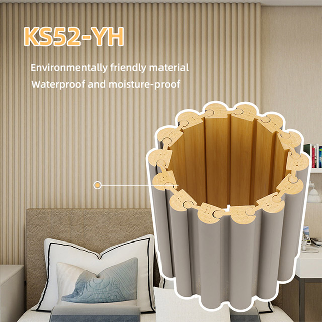 Стеновая панель с вращающейся решеткой размером 52*21 мм представляет собой декоративный профиль стеновой панели с уникальным внешним видом. Изготовленный из композитного материала, он обладает уникальными свойствами, такими как водостойкость, влагостойкость, устойчивость к насекомым, огнестойкость и устойчивость к коррозии. Его эффектный внешний вид и плавные линии создают на стене потрясающую визуальную глубину. Он идеально подходит для создания декоративных колонн или изогнутых стен с сильным ощущением глубины, а также вогнутых и выпуклых поверхностей.